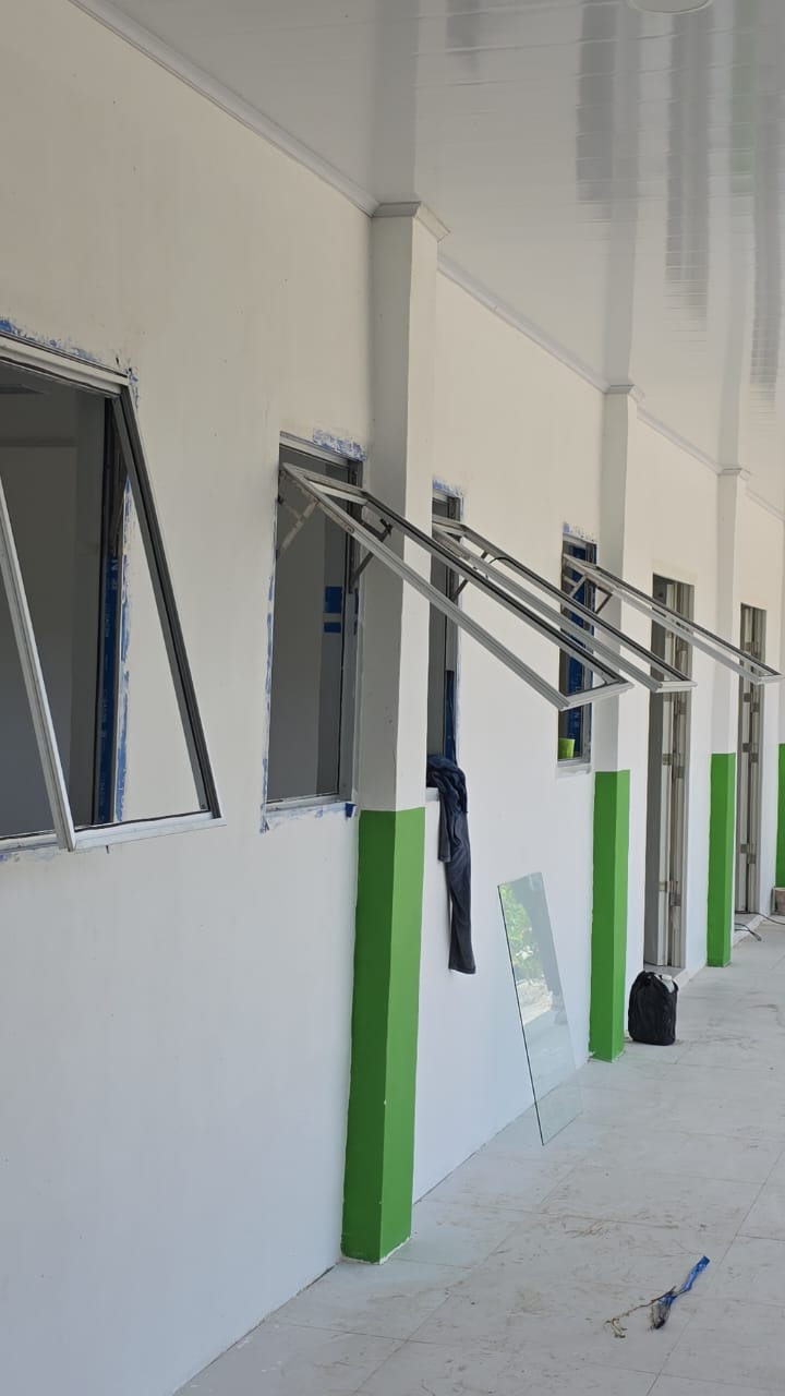 Pemasangan jendela berbahan aluminium yang tidak presisi, dengan lis sambungan terlihat renggang, tidak rapi, dan jauh dari standar pekerjaan finishing.