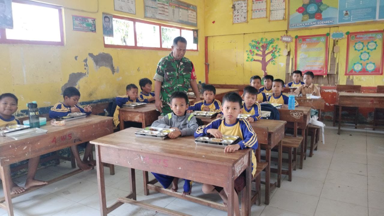 Di lapangan, Babinsa tidak hanya mengawasi pembagian makanan, tetapi juga berinteraksi dengan guru dan orang tua murid untuk memberikan edukasi tentang pentingnya gizi seimbang bagi tumbuh kembang anak.