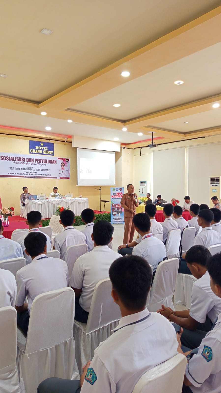 Selasa (09/12/2025), ratusan pelajar SMA/SMK se-Kabupaten Sidrap mengikuti kegiatan “Sosialisasi Bahaya Narkotika dan Bela Negara” yang digelar di Ballroom Hotel Zidni, Kelurahan Pangkajene.