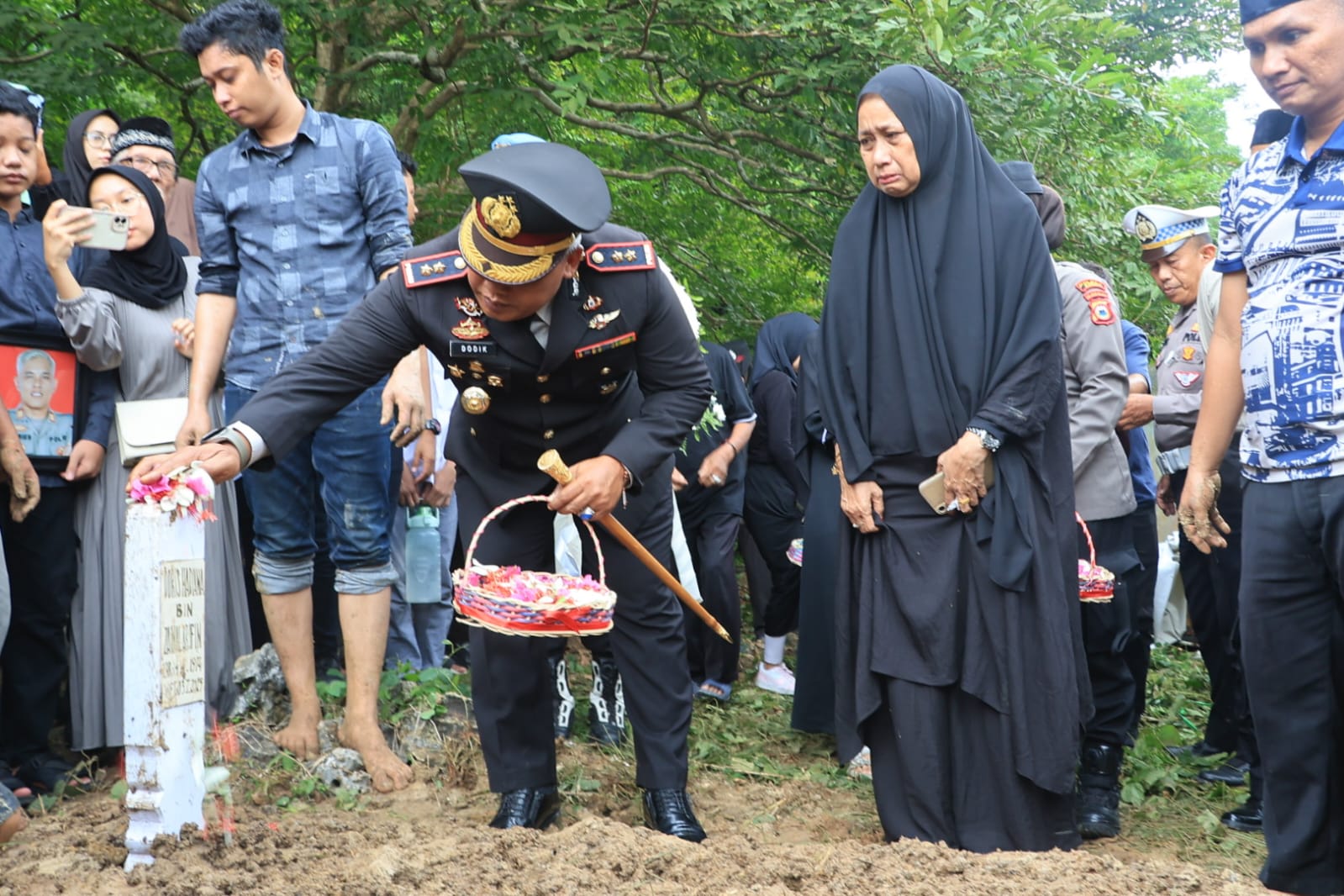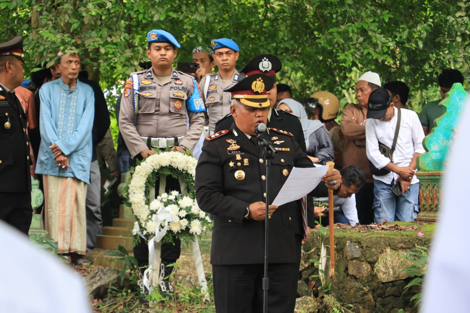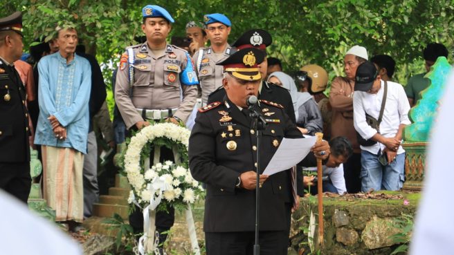“Dedikasi, jasa, dan pengabdian almarhum patut dijadikan suri teladan dalam melanjutkan perjuangan beliau,” ungkap Kapolres penuh haru.