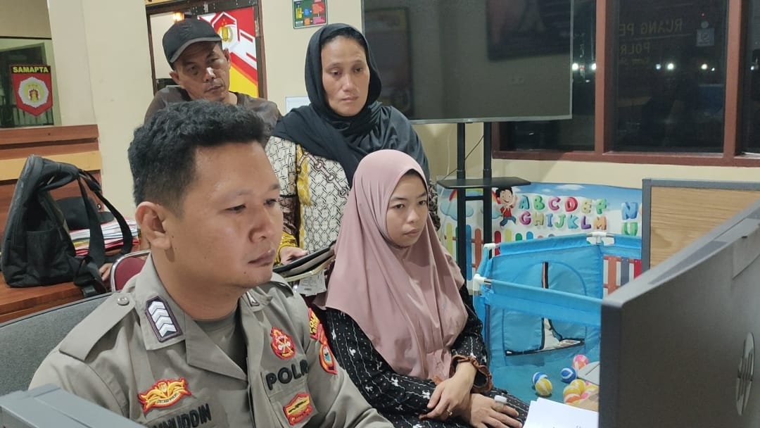 Korban Nur Hidayah saat melapor resmi ke SPKT Polres Sidrap, Senin malam (27/10/2025).