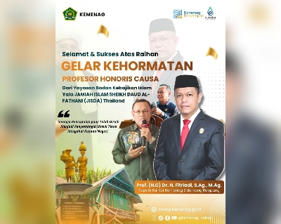 Kepala Kantor Kementerian Agama (Kemenag) Sidrap, Prof (H.C), Dr. H. Fitriadi, S.Ag., M.Ag., resmi dianugerahi gelar Profesor Honoris Causa (H.C.) oleh Yayasan Badan Kebajikan Islam Jamiah Islam Sheikh Daud Al-Fathani (JISDA), Thailand.
