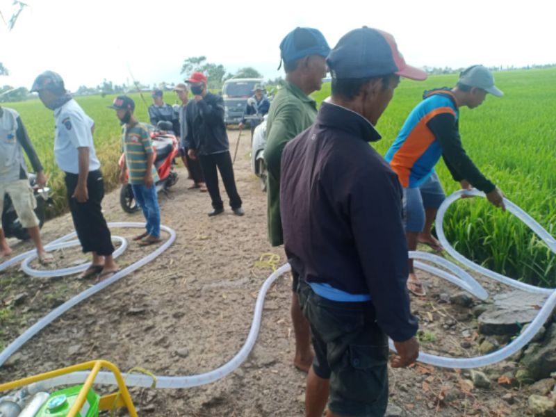 Aksi yang melibatkan petani itu menggunakan alat postiran bom asap pembasmi tikus, kompor tikus, dan mesin pompa air.