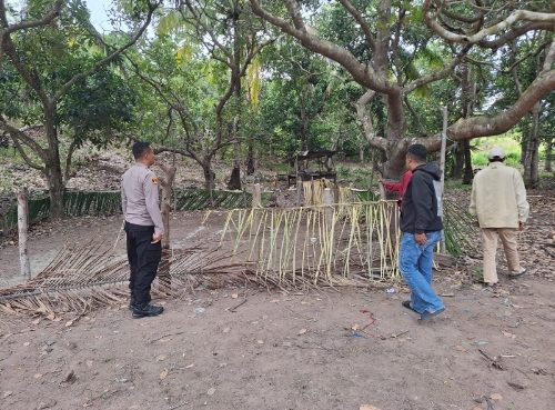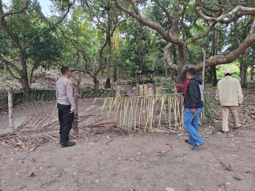 Aparat dari Mapolsek Tellu Limpoe menyisir sebuah area perkebunan di Massepe yang disinyalir kerap dijadikan lokasi sabung ayam.