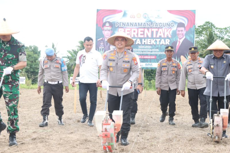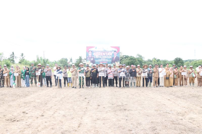 SIDRAP, Penarakyat.com – Sebagai bagian dari upaya mendukung ketahanan pangan nasional, Kapolres Sidrap AKBP Fantry Taherong bersama jajaran Forum Koordinasi Pimpinan Daerah (Forkopimda) Kabupaten Sidrap, Petani dan Sektor Swasta melaksanakan penanaman jagung serentak satu juta hektar seluruh Indonesia.