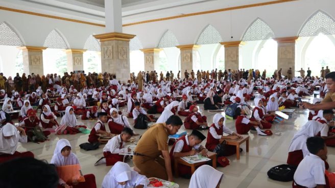 Sinjai, Penarakyat.com – Ratusan anak dari tingkat SD dan PAUD memeriahkan hari kedua Gebyar Ramadan dengan mengikuti lomba kaligrafi dan mewarnai di Masjid Islamic Center, Sinjai (18/3/2025).
