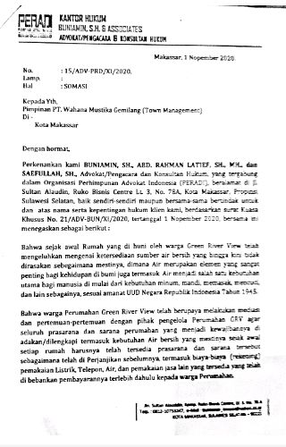 Hal itupu membuat para penghuni melakukan Somasi dengan melayangkan surat berkeberatan kepada manajemen PT. Wahana Mustika Gemilang (WMG) Makassar.