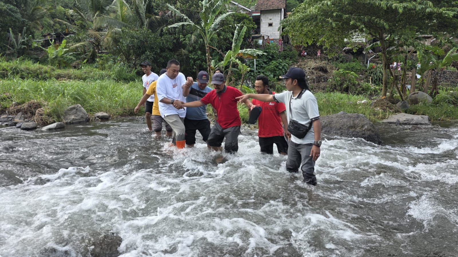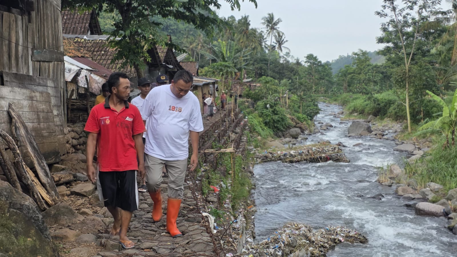 Mas Rio meninjau langsung lokasi dengan menyusuri alur sungai, lantaran tidak ada lagi jalur darat yang dapat dilewati. Seluruh jembatan penghubung tampak putus, sementara badan jalan rusak parah dan tak bisa dilalui kendaraan maupun pejalan kaki.