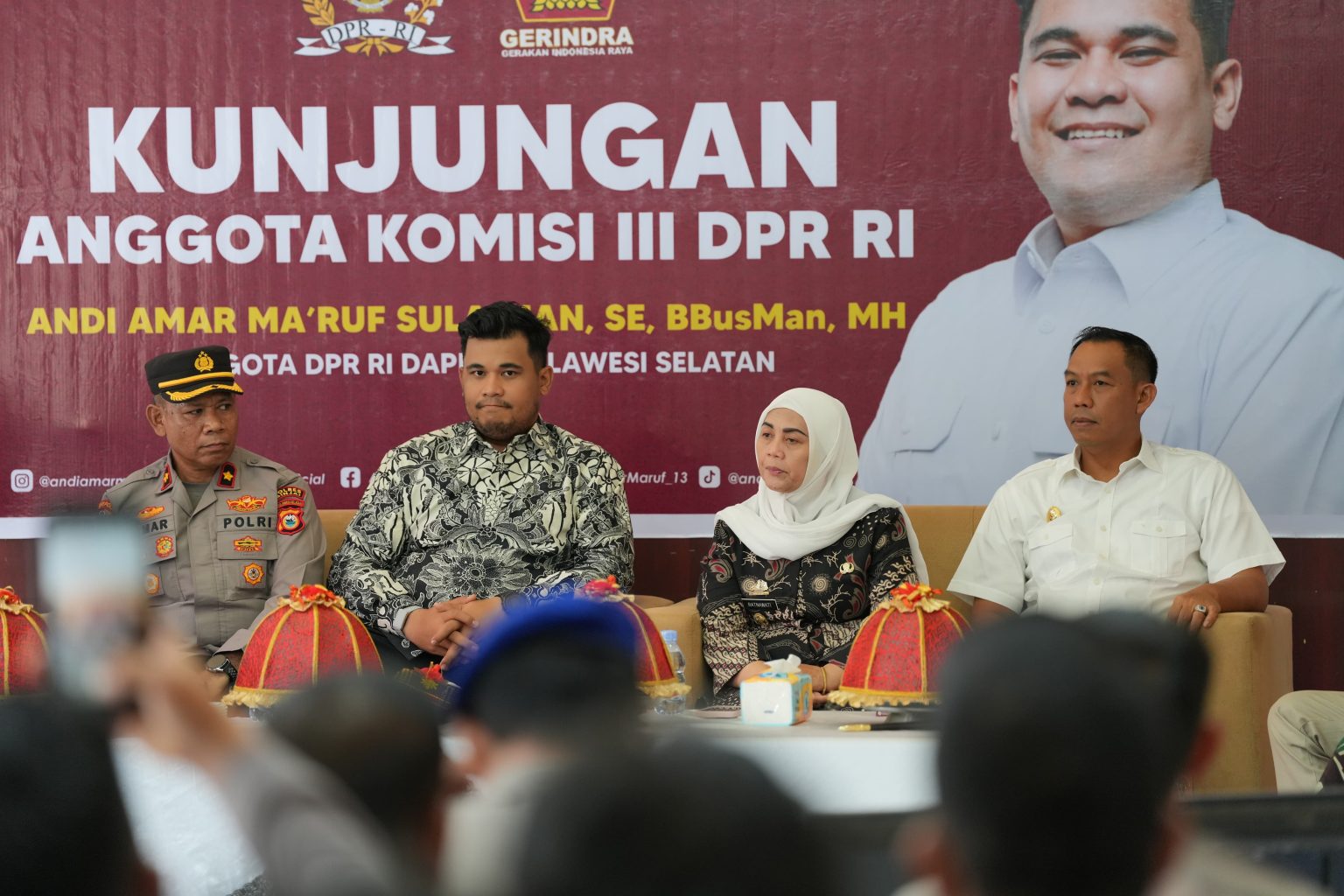 Menanggapi hal tersebut, Andi Amar Ma’ruf Sulaiman menegaskan bahwa reses adalah wujud tanggung jawabnya untuk memastikan program-program strategis pemerintah pusat dapat terimplementasi dengan baik hingga ke tingkat daerah. Fokus utamanya, kata dia, adalah sektor penegakan hukum.