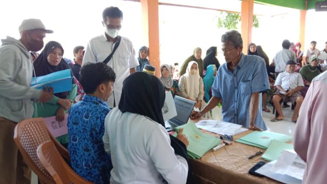 Hasil program pendaftaran tanah sistematis lengkap,berupa penyerahan dokumen sertifikat hak milik dan hak pakai kepada pemilik lahan dilaksanakan di Aula Kantor Desa Nepo Kecamatan Mallusetasi Kabupaten Barru.