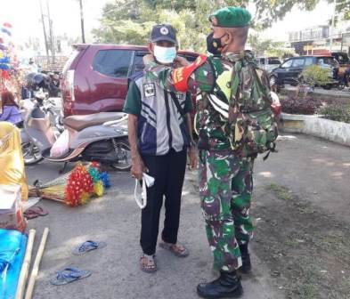 Di pasar tersebut, Babinsa bersama Satpol PP dan juga perangkat Kejari Takalar memberikan himbauan kepada para pedagang dan pengunjung untuk disiplin menggunakan masker saat melakukan aktifitas di pasar guna mencegah dan memutus mata rantai Covid-19.