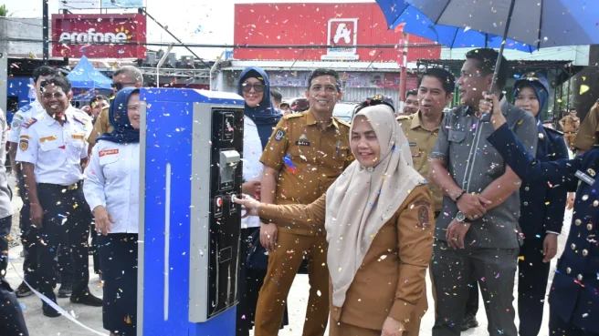 Peresmian ini menjadi tonggak awal penerapan sistem parkir elektronik di kawasan pusat aktivitas ekonomi masyarakat tersebut. Prosesi ditandai dengan pengguntingan pita sebagai simbol dimulainya operasional portal parkir elektronik yang diharapkan mampu menghadirkan tata kelola parkir yang lebih tertib dan modern.