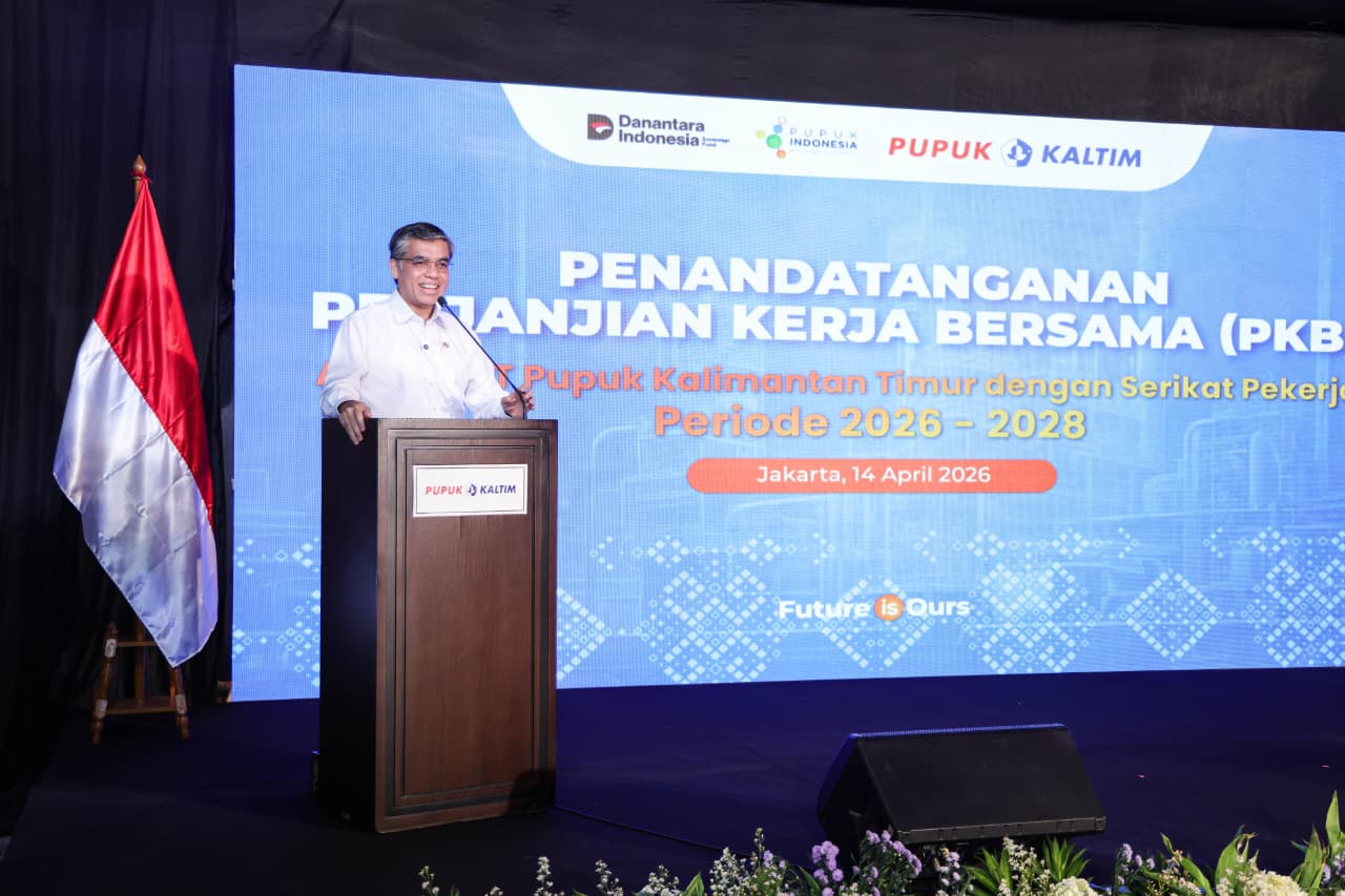 Pernyataan tersebut disampaikan saat menghadiri penandatanganan Perjanjian Kerja Bersama (PKB) ke-VIII periode 2026–2028 antara PT Pupuk Kalimantan Timur dan Serikat Pekerja Kerukunan Keluarga Karyawan PT Pupuk Kaltim di Jakarta, Selasa (14/4/2026).