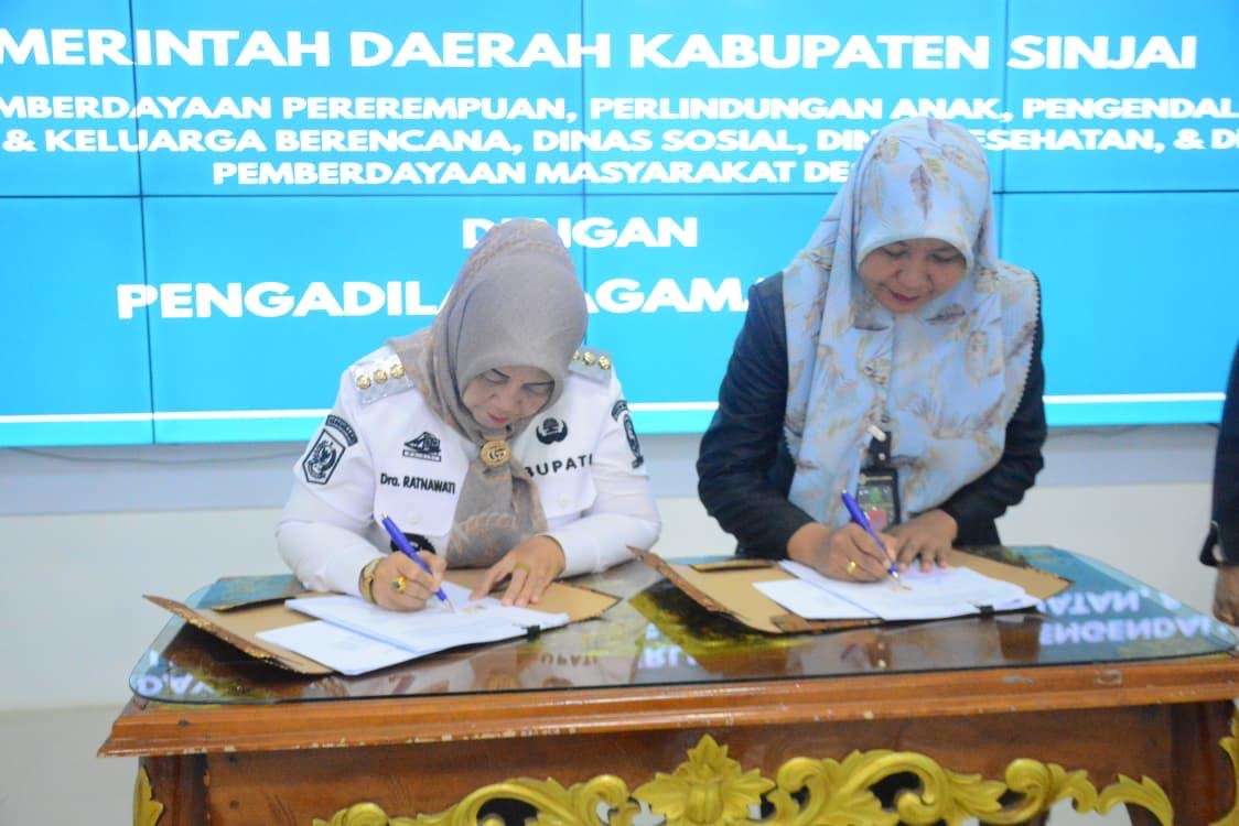 Penandatanganan MoU dilakukan langsung oleh Bupati Sinjai Dra. Hj. Ratnawati Arif selaku pimpinan tertinggi Pemerintah Daerah dan Ketua Pengadilan Agama Sinjai Rokiah Binti Mustaring.