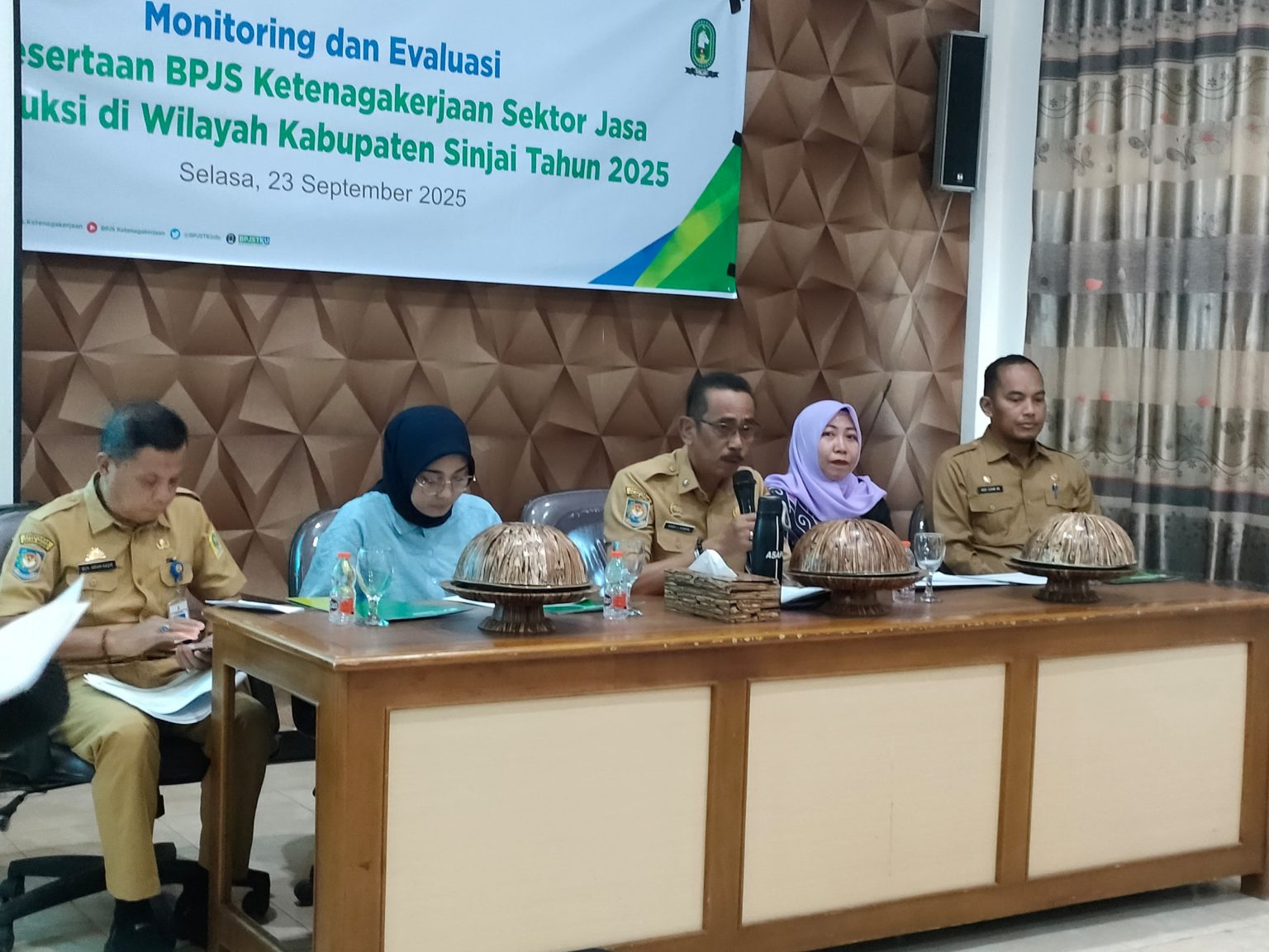 SINJAI, Penarakyat.com – Upaya Pemerintah Kabupaten (Pemkab) Sinjai dalam memperluas cakupan perlindungan sosial kembali ditunjukkan melalui kegiatan Monitoring dan Evaluasi (Monev) Kepesertaan Segmen Jasa Konstruksi BPJS Ketenagakerjaan tahun 2025. Agenda ini resmi dibuka oleh Sekretaris Daerah (Sekda) Sinjai, Andi Jefrianto Asapa, di Ruang Rapat Gedung B Setdakab Sinjai, Selasa (23/9/2025)