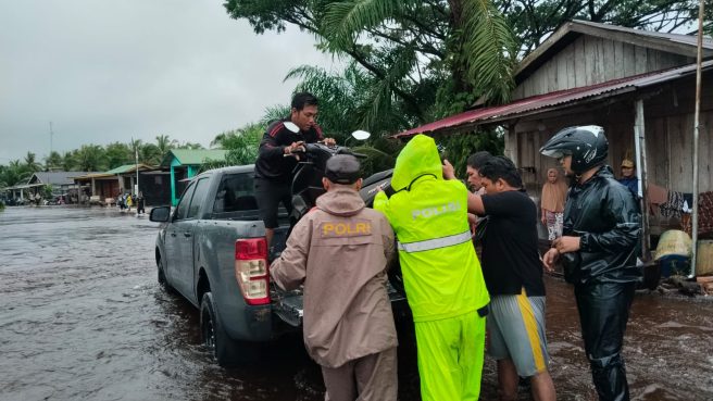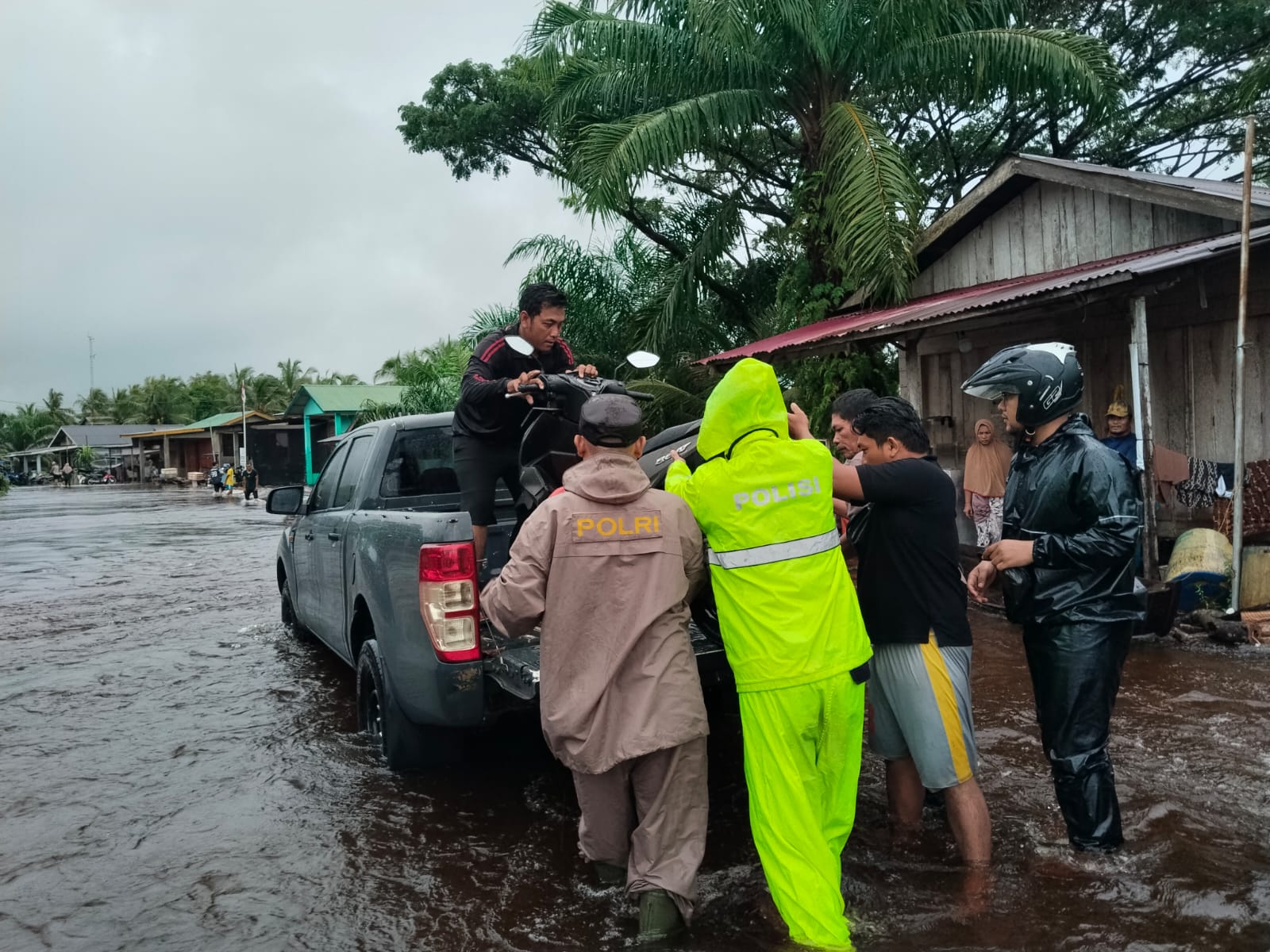 Menindaklanjuti kondisi tersebut, personel Polsek Simpang Kanan bergerak cepat melakukan evakuasi terhadap warga terdampak.