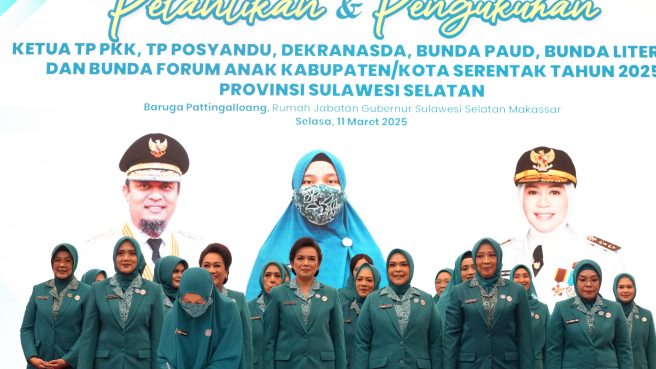 WAJO, penarakyat.com – Baruga Pattingalloang, Rumah Jabatan Gubernur Sulawesi Selatan, dipenuhi jajaran Ketua TP PKK dari berbagai daerah yang hadir dengan penuh semangat, Senin (11/3). Para pemimpin organisasi ini bersiap mengemban amanah baru demi meningkatkan kesejahteraan masyarakat. Di antara mereka, Hj. Fatmawati A. Rosman resmi dilantik sebagai Ketua TP PKK Kabupaten Wajo periode 2025-2030. Dengan penuh keyakinan, ia berkomitmen membawa TP PKK Wajo semakin maju dan berdaya guna bagi keluarga di Bumi Lamaddukkelleng.
