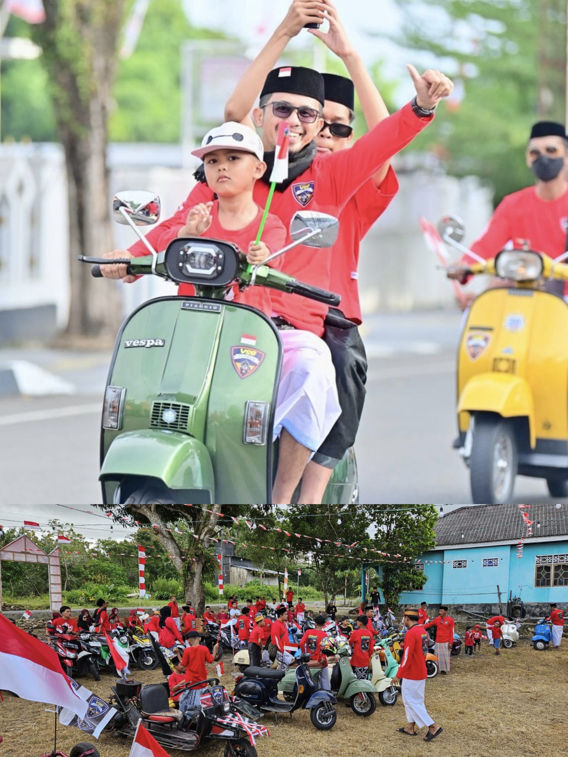 Bone, PenaRakyat.com – Suasana kemerdekaan terasa istimewa di Kota Watampone, Kabupaten Bone, Sulawesi Selatan. Puluhan motor klasik Vespa yang tergabung dalam komunitas Vespa Sarungan Bone (VSB) menggelar konvoi kemerdekaan bersama anak yatim, Minggu (17/8/2025), dalam rangka memeriahkan Hari Ulang Tahun (HUT) ke-80 Republik Indonesia.