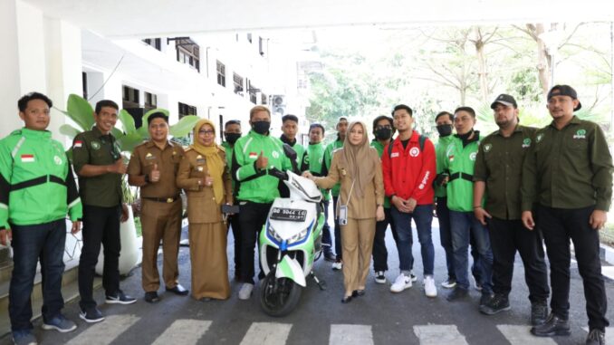 Terlihat Wakil Wali Kota Makassar, Fatmawati Rusdi mengawali aktivitasnya menggunakan transportasi Ojek Online (Ojol) dari aplikasi Gojek.